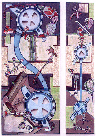 the painting... I work intuitively, starting with a doodle and a theme and let